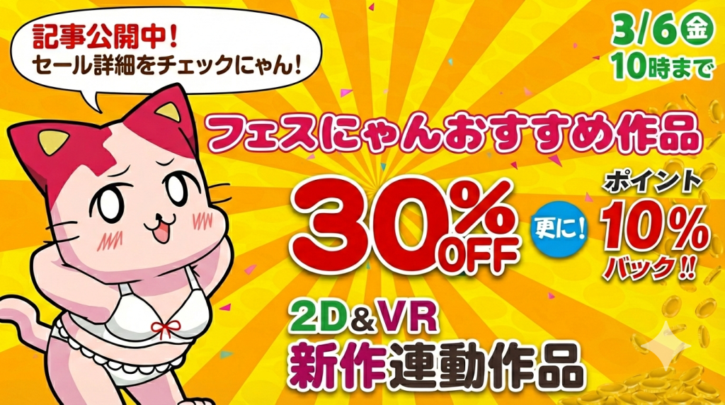 【2月22日はフェスにゃんの日!?】おすすめ作品が30%OFF&10%ポイント還元!見逃厳禁の超おトクなセール開催中! セールを見る 🐈 セールの特大おすすめポイント 🐈対象... -