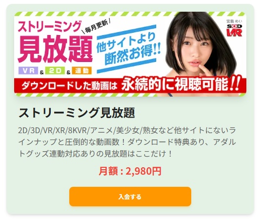 さらに、XR動画だけでなく2D動画・VR動画など、見放題特典対象作品の中から 毎月ダウンロード して楽しめます。