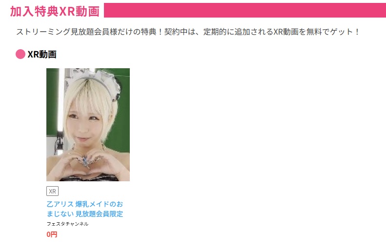 見放題TOPページ内にある「加入特典XR動画」欄の中からお好みの特典XR動画を自由にお選びいただけます。
