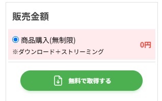ストリーミング見放題に加入されている方は、対象作品のページに「無料で取得する」ボタンが表示されます。