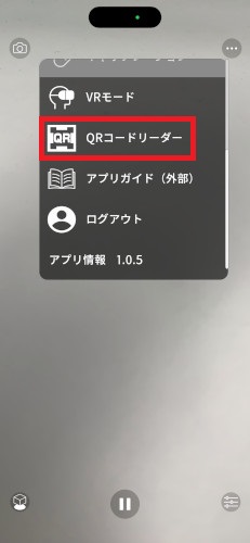 - ログイン後、再度三点アイコンをタップし「QRコードリーダー」を選択します。